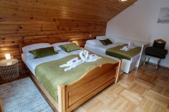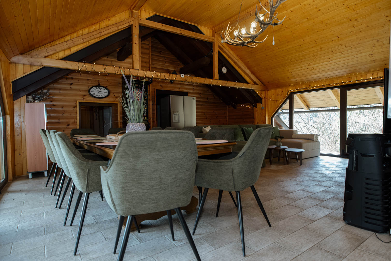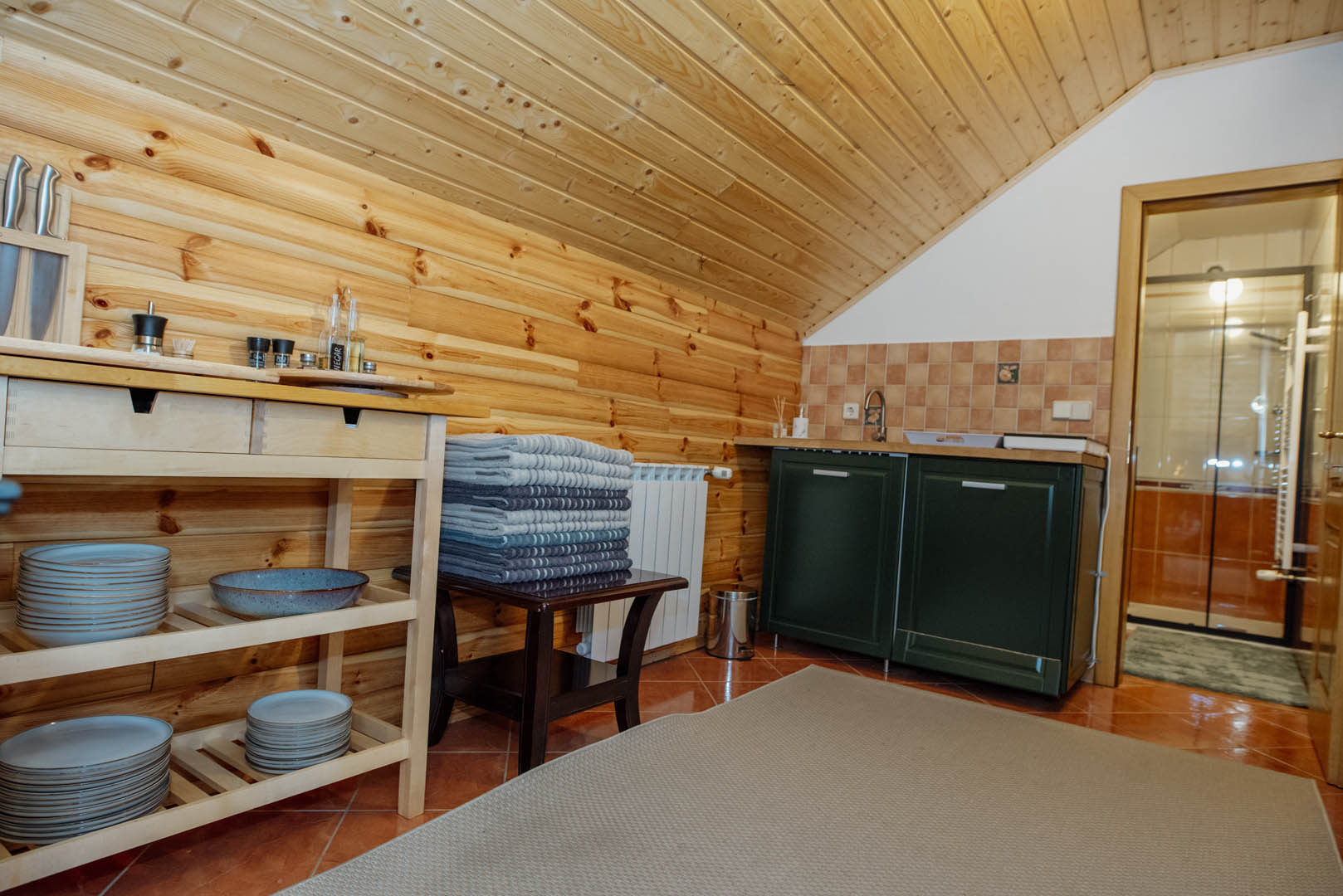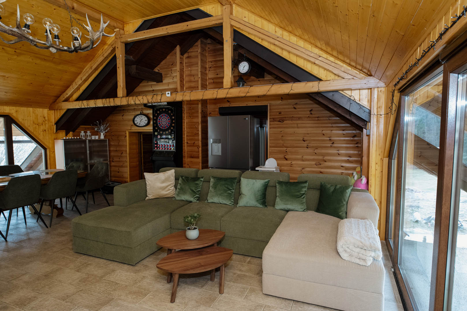 The house consists of three floors and an additional building with a SPA zone. It is surrounded by greenery and endless forests and invites you to a pristine vacation away from the noise of the city and the intensity of modern life. In winter, the environment is covered with snow and provides great pleasure and fun for both adults and children.